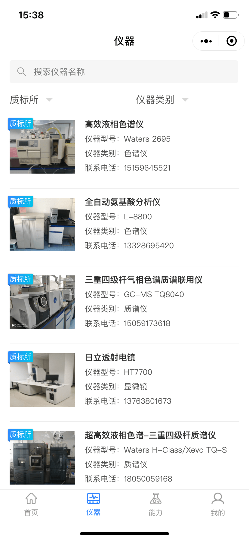 公众可通过微信小程序浏览仪器共享服务网站信息,手机端美观的呈现网站内容。