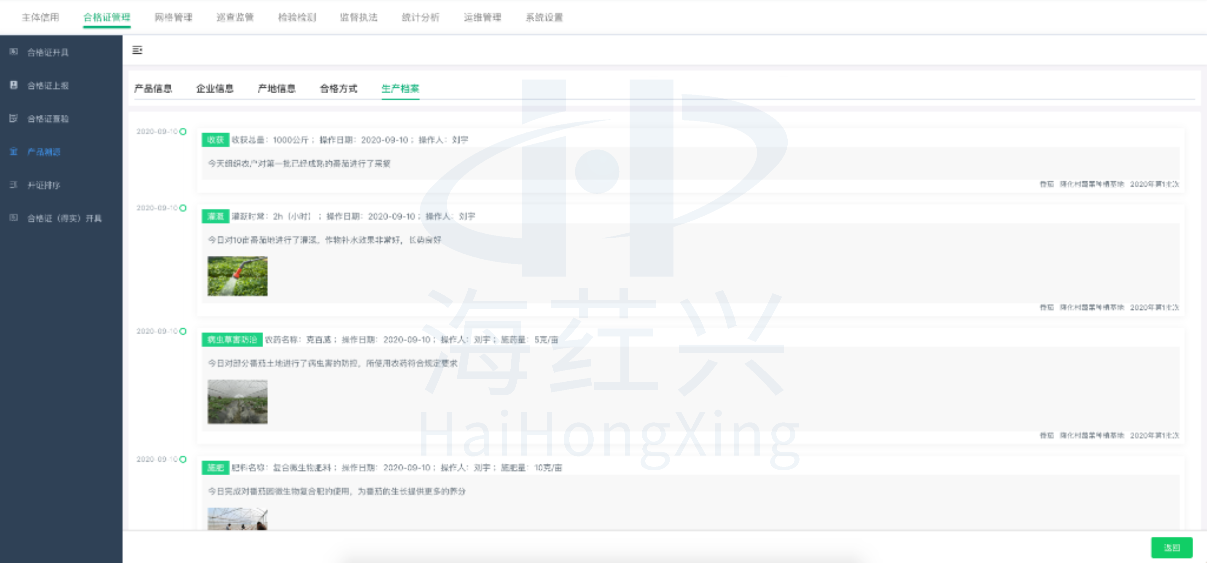 在合格证开具记录中,可查看生产经营主体录入的完整生产过程记录和投入品使用记录。