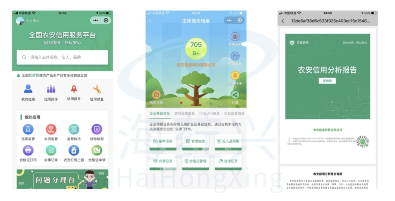 健全主体信用档案是农安信用体系建设的基础和前提。农产品生产经营主体可运用微信小程序建立电子化信用档案,动态管理信用记录,修复失信行为,提升信用水平。有条件的地区通过使用信用监管工具、系统对接等技术方式实现主体信用档案共建共享。