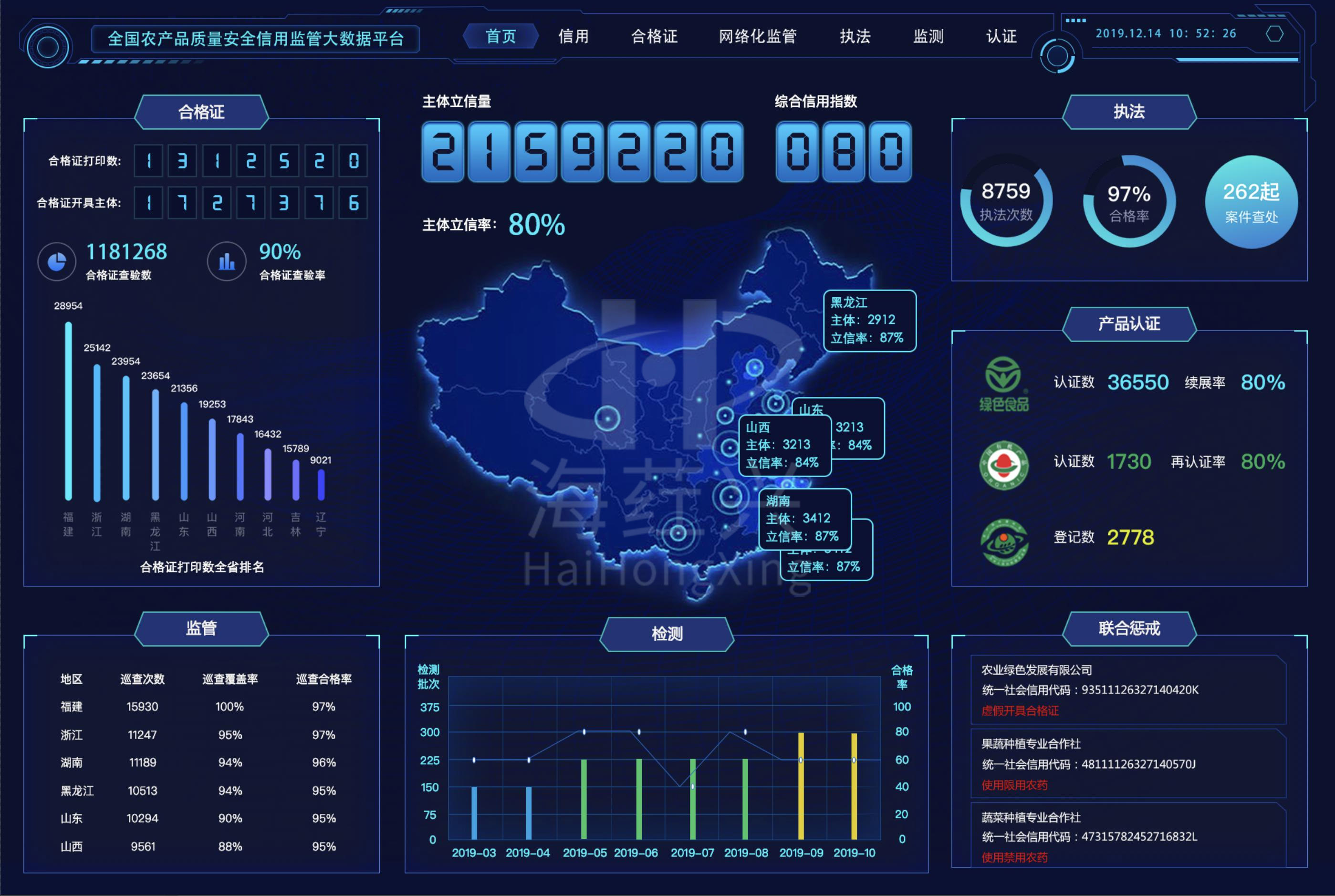 运用GIS、图表等可视化展示分析监管全域数据,对监管能力布局、主体信用状况、产品交易流向等进行展示分析,研判趋势规律,锁定可疑高风险产品和重点监控主体,支撑管理者总揽全局、指挥调度和指导决策。
