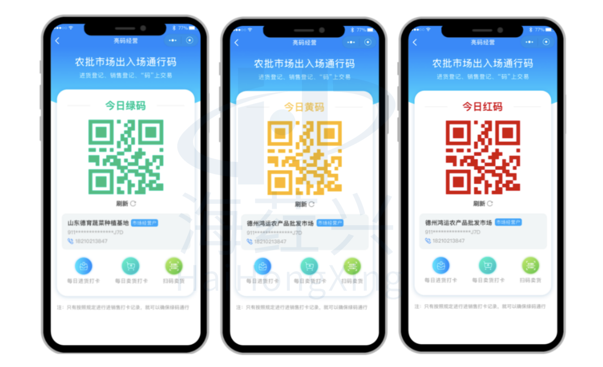 ·产品价值· 根据农产品批发市场经营者每日的进货记录、食用农产品合格证开具记录以及销售记录,系统自动为其生成农批市场进场通行码,并分别以“绿码、橙码、红码”等不同颜色予以展示,供农批市场开办者对每日进场销售的农产品进行快速入市查验。农批市场进场通行码还与合格证、追溯信息、检测结果等进行关联,实现农产品合格证、追溯凭证、检测证明的“三证”信息融合。通过农批市场进场通行码,农产品批发市场经营者可调取农产品批发市场经营者开具的食用农产品合格证及购货凭证(如:动物产品检疫合格证明等),查验票据的真实性。